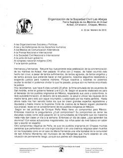 Voz de la Organización de la Sociedad Civil Las Abejas